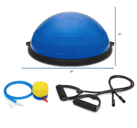 - Includes Heavy Duty Half Ball for Strength Training Exercises, Resistance Band Straps with Soft Foam Handles, Workout Guide & Instructions, and Pump