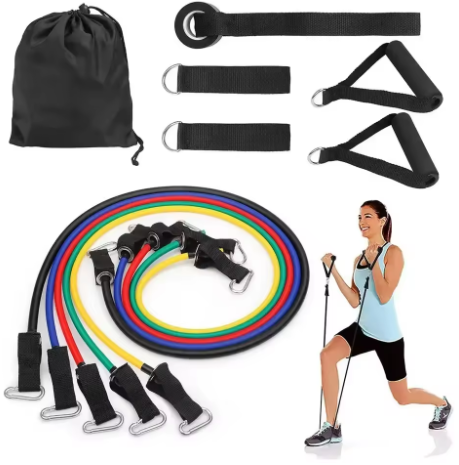 - Personal Home Gym: This resistance band set includes five exercise bands, one door anchor, two cushioned handles, a carrying case, and a user manual to allow you to perform the widest variety of resistance training exercises possible at home.